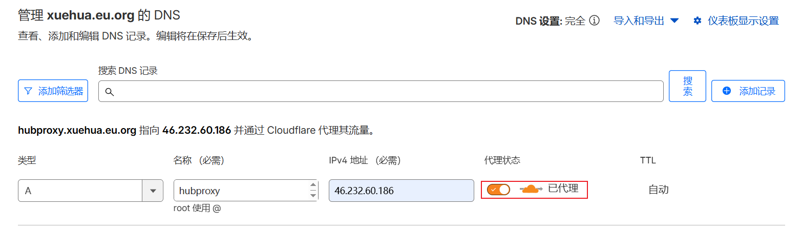回源域名:托管在cloudflare,解析A记录到源服务器IP并开启小黄云