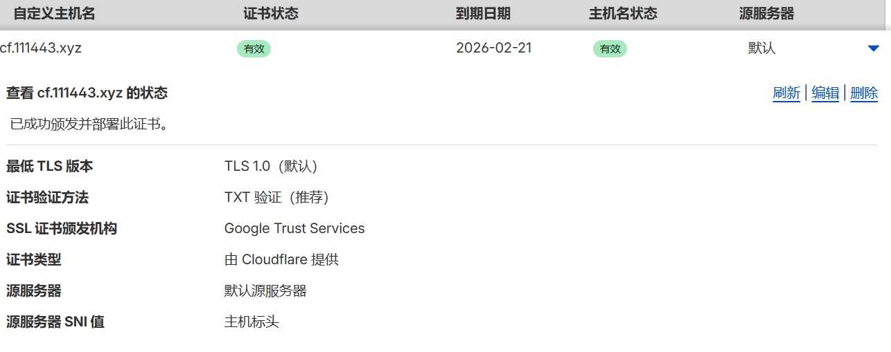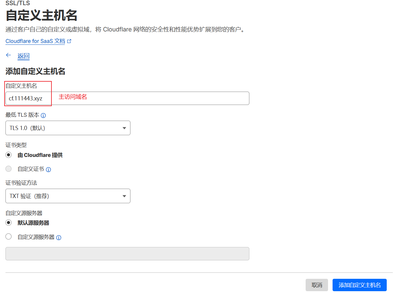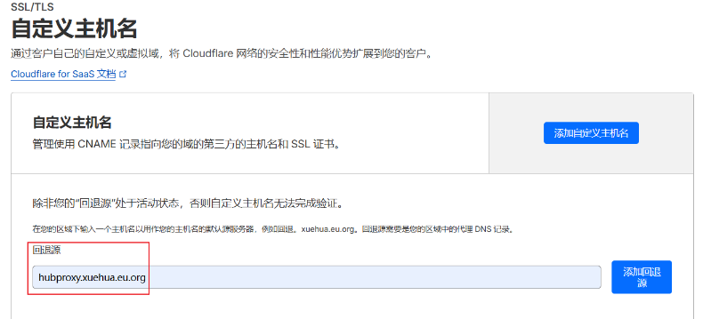 菜单:SSL/TLS --> 自定义主机名 --> 添加自定义主机名