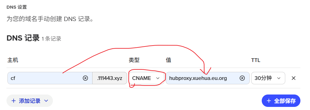 证书配置完成后,将主域名A记录移除,使用CNAME记录解析到优选域名