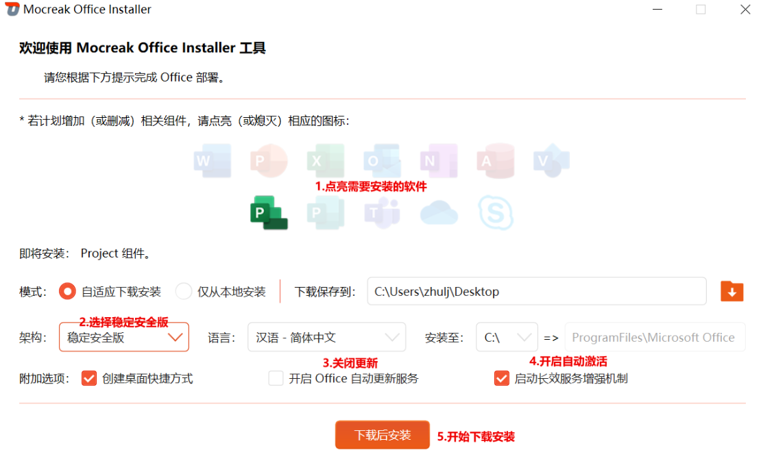 激活:下载工具如下操作激活,我是单独安装的Project2021